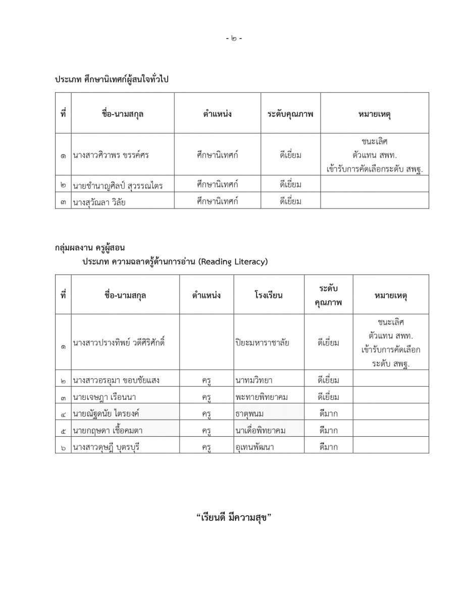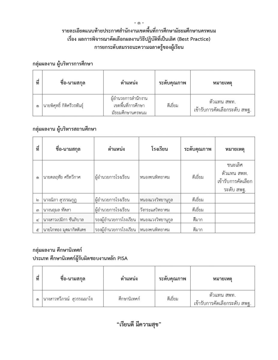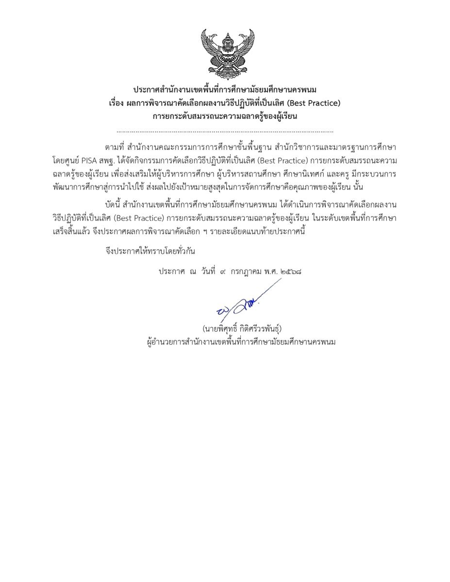 รับรางวัล ผลงานวิธีปฏิบัติที่เป็นเลิศ (Best Practice) การยกระดับสมรรถนะความฉลาดรู้ของผู้เรียน