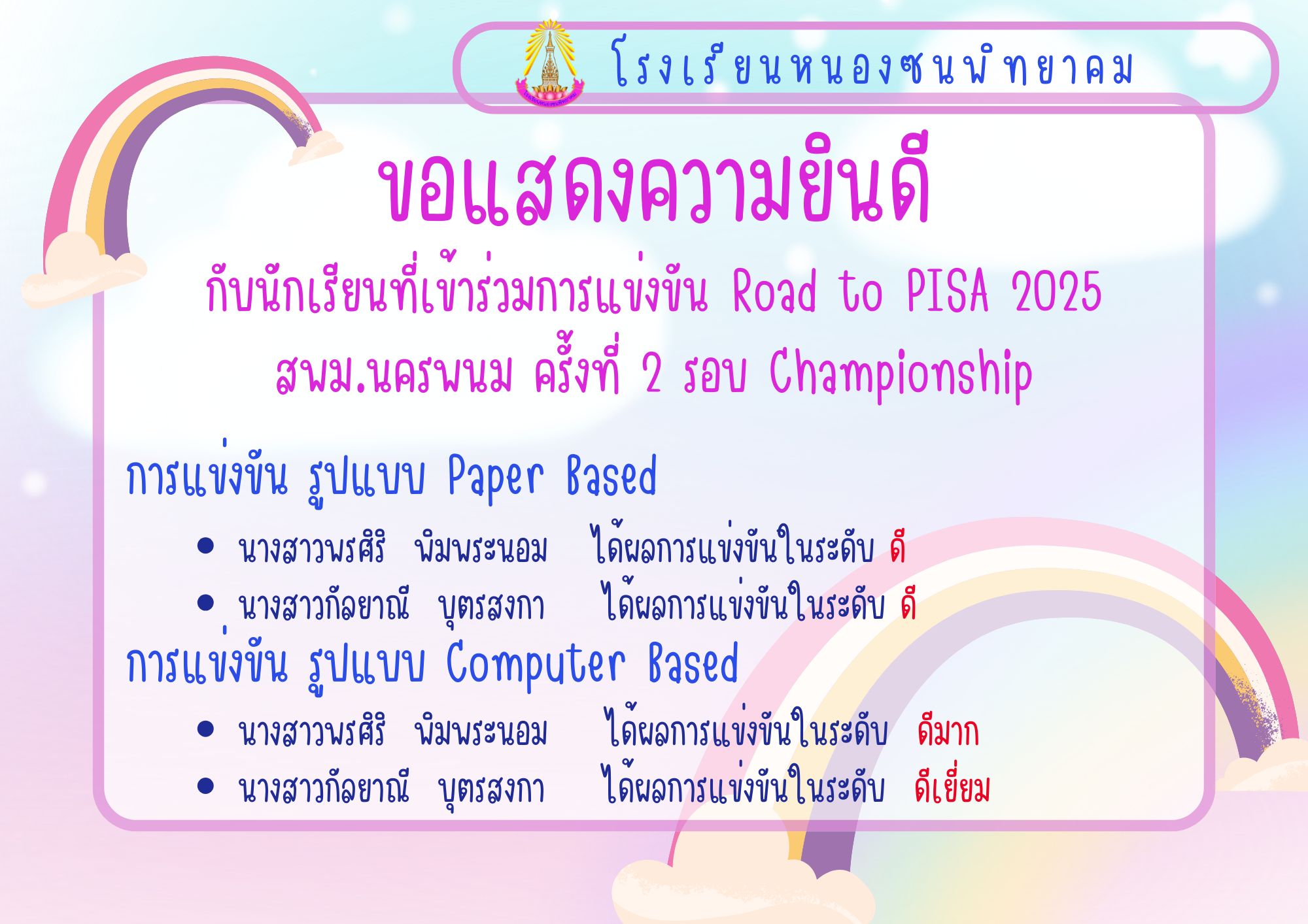 ประกาศผลการแข่งขัน Road to PISA 2025 สพม.นครพนม ครั้งที่ 2 รอบ Championship