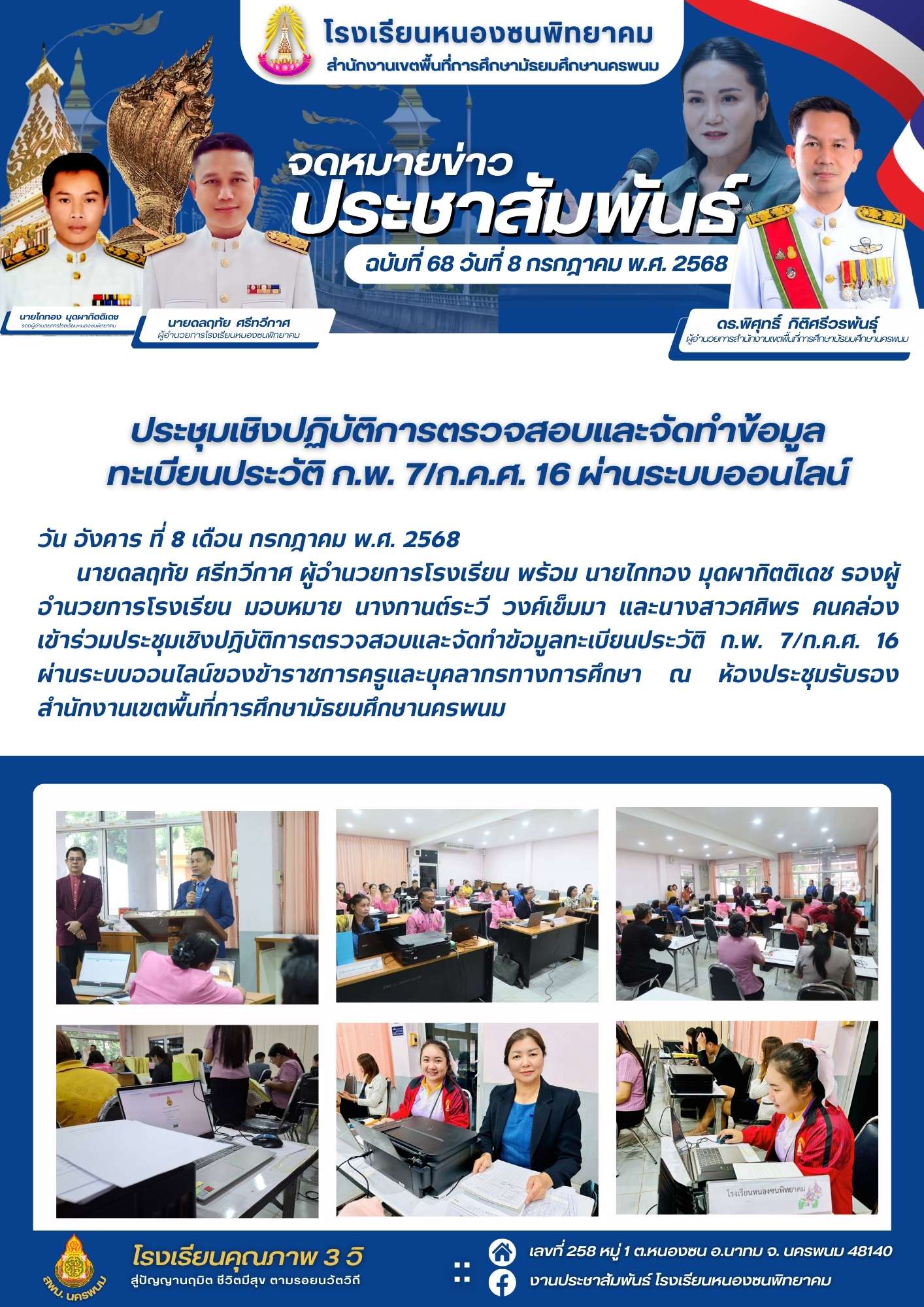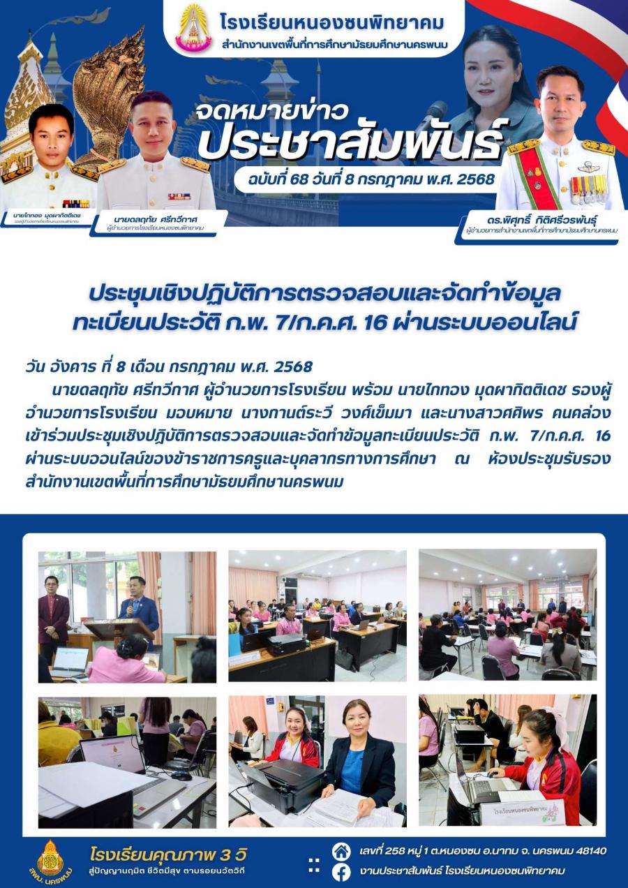 ประชุมเชิงปฏิบัติการตรวจสอบและจัดทำข้อมูลทะเบียนประวัติ ก.พ. 7/ก.ค.ศ. 16 ผ่านระบบออนไลน์