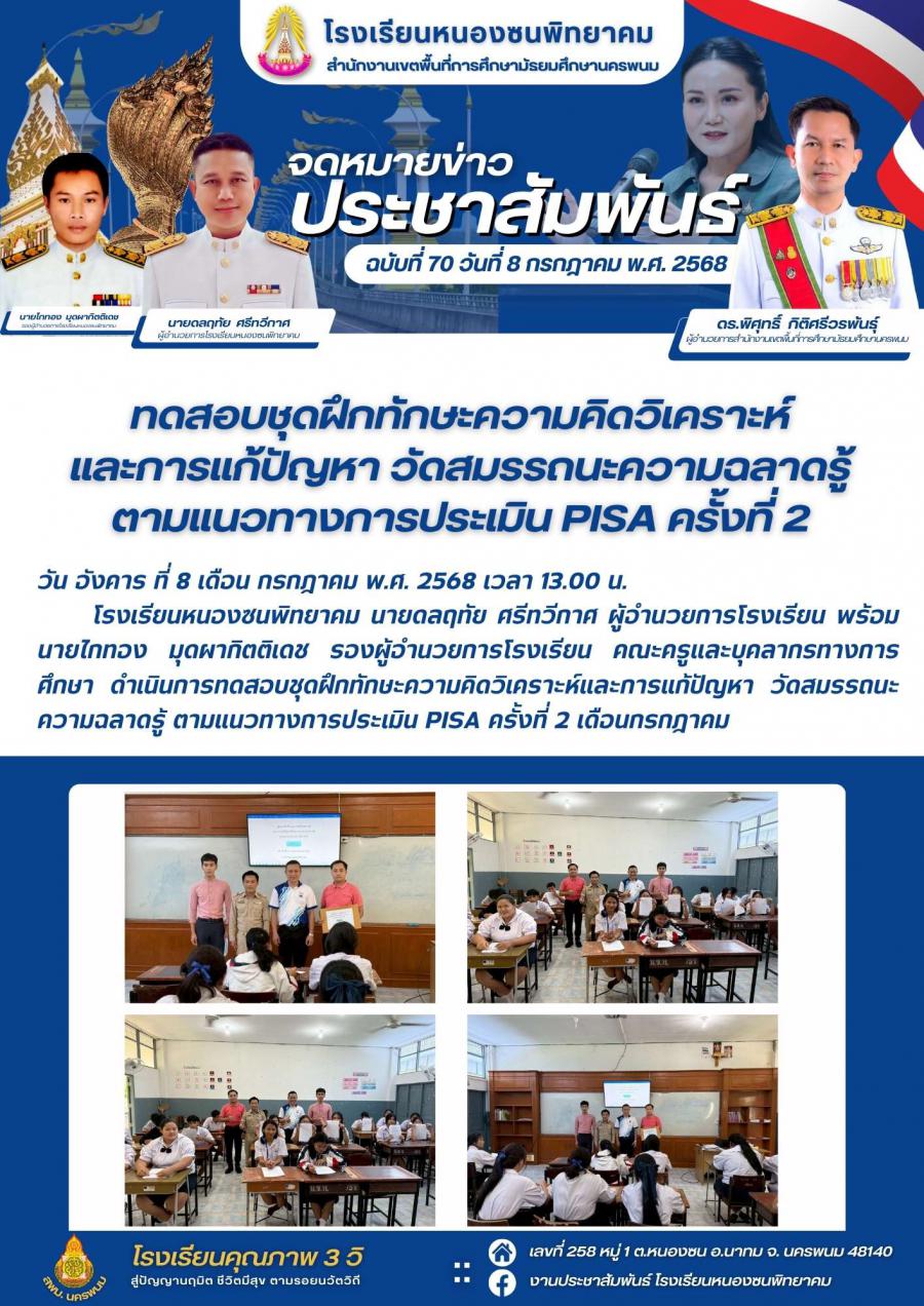 ทดสอบชุดฝึกทักษะความคิดวิเคราะห์ และการแก้ปัญหา วัดสมรรถนะความฉลาดรู้ ตามแนวทางการประเมิน PISA ครั้งที่ 2