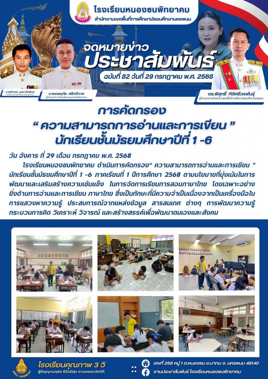 การคัดกรอง ความสามารถการอ่านและการเขียน นักเรียนชั้นมัธยมศึกษาปีที่ 1 -6
