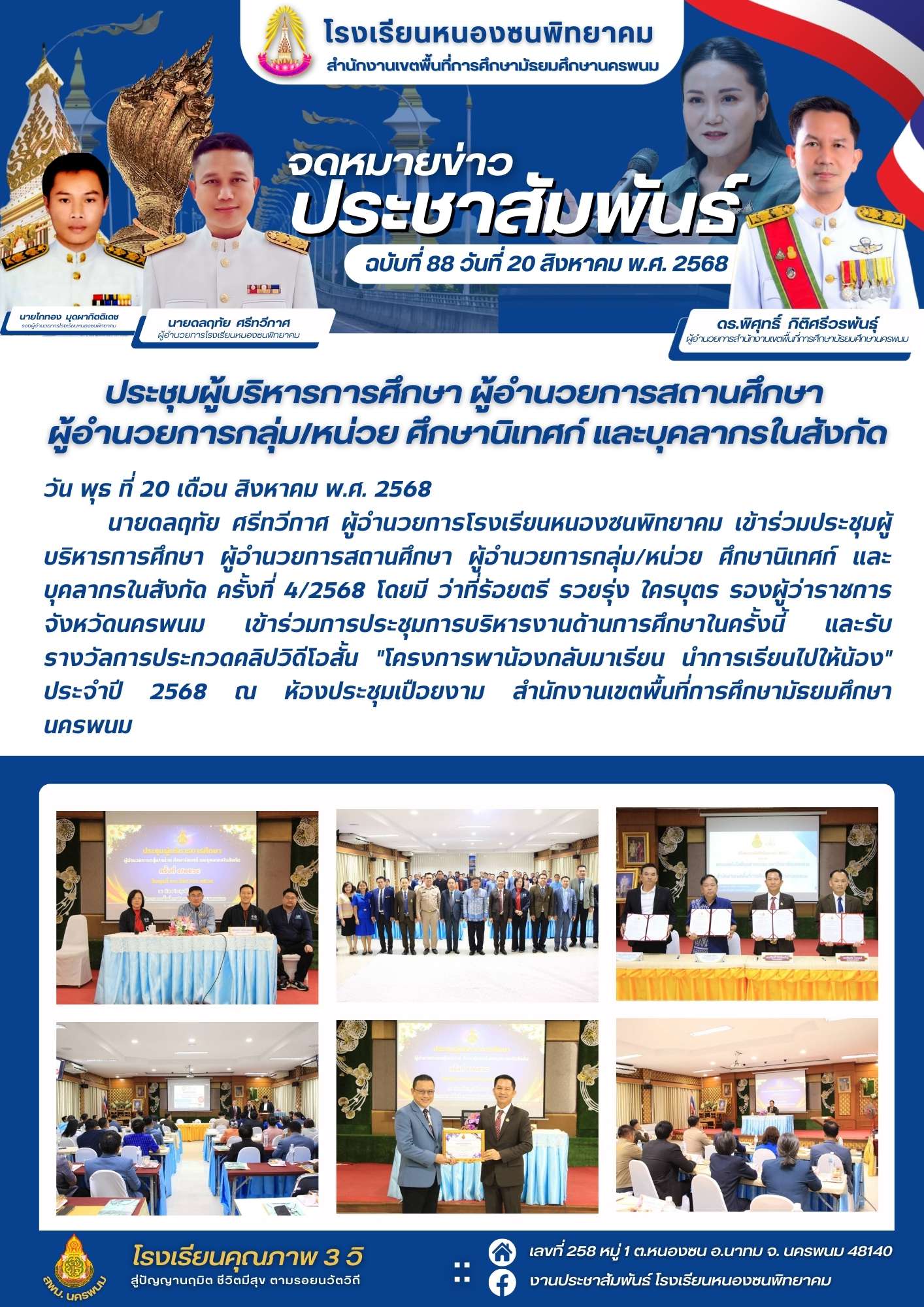 ประชุมผู้บริหารการศึกษา ผู้อำนวยการสถานศึกษา ผู้อำนวยการกลุ่ม/หน่วย ศึกษานิเทศก์ และบุคลากรในสังกัด